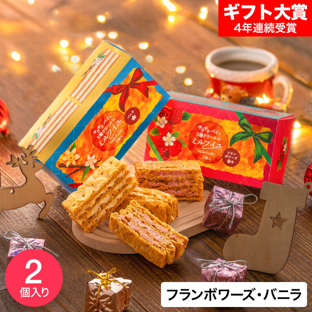 \540 クリスマス 冬ギフト サクサクパイと3層クリームのミルフイユ フランボワーズ バニラ / お菓子 ス... [詳細 |