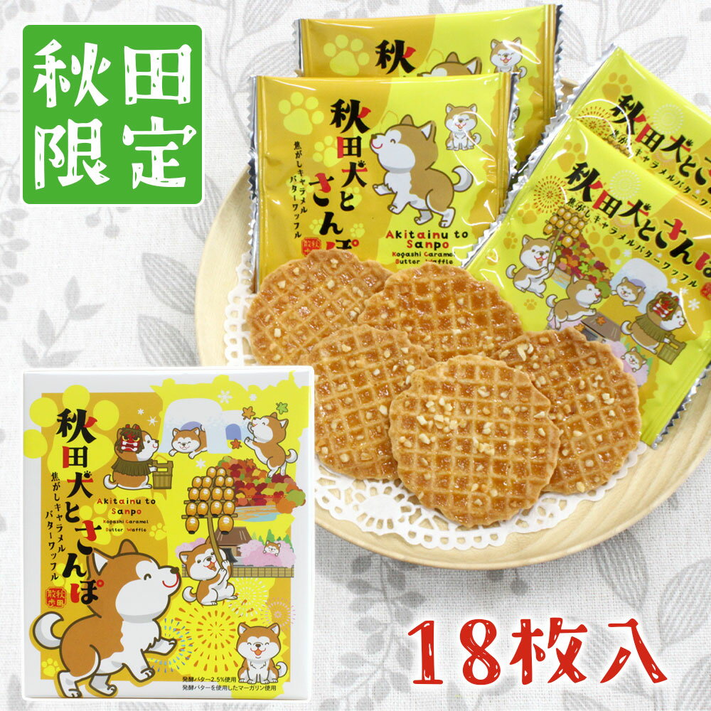 \648 【秋田限定】秋田犬とさんぽ 焦がし キャラメル バター ワッフル [18枚入] 個包装タイプ 秋田 ... [詳細 |
