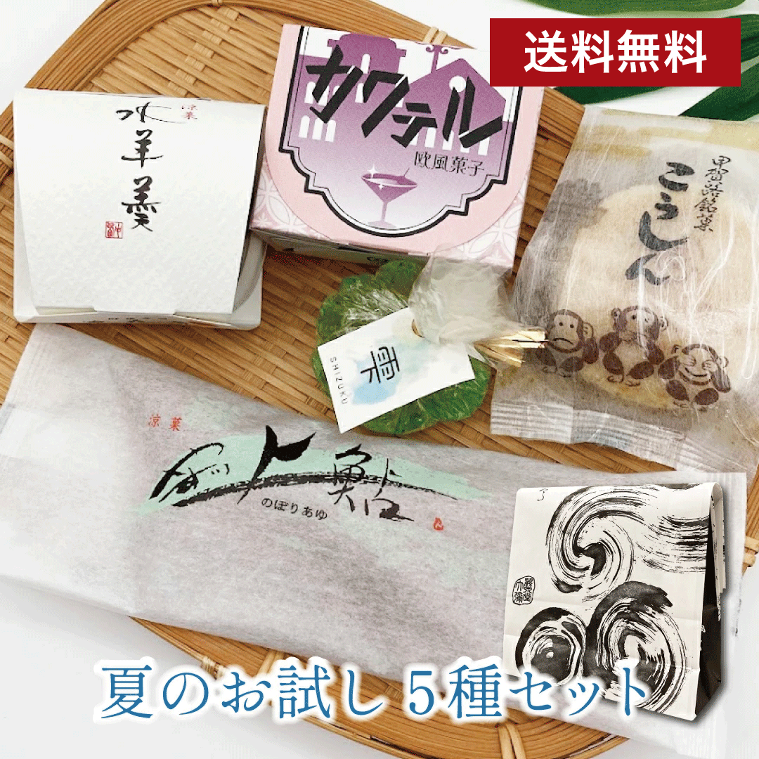 \2,106 《送料無料》夏季限定 5種類!色々な和菓子を少しずつお試し(袋入り商品) 水羊羹 カクテル こうしん... [詳細 |
